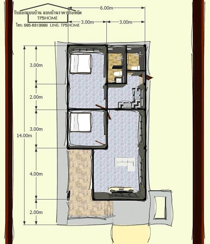 This house design would actually qualify as a cottage because it has very small area. It really looks so small but it actually has 14 meters length and 6 meters width. It is really a narrow and elongated design. But check its floor plan below how it was actually designed.