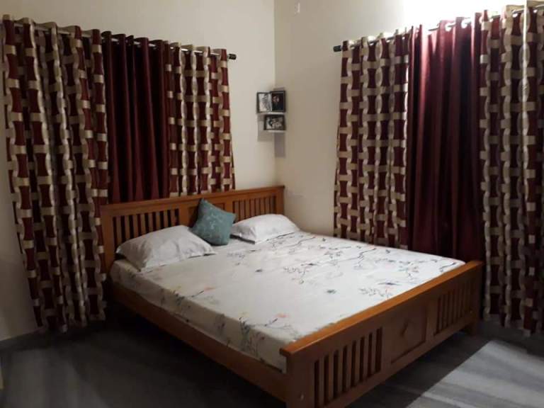 The bed looks comfortable and neat. The dark curtains is the choice of the one living in it. You can choose to have a lighter color to make the atmosphere of the house lively and relaxing. If the room has subdued mood like this, it is really intended for sleeping, which a bedroom is mostly used for anyway.