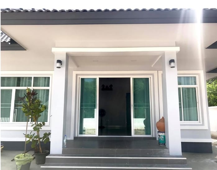 Today’s featured house is a three-bedroom conventional bungalow with a beautifully designed hip roof. Its gray, white, and black paint make its exterior exude relaxing and calm vibes. The glass door and glass windows added sophistication and appeal as well as the beautifully assembled roofing. If you are interested with it, go check it out below.