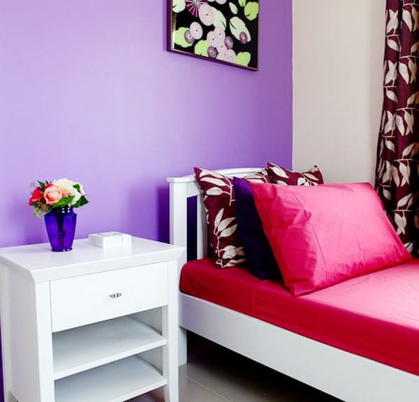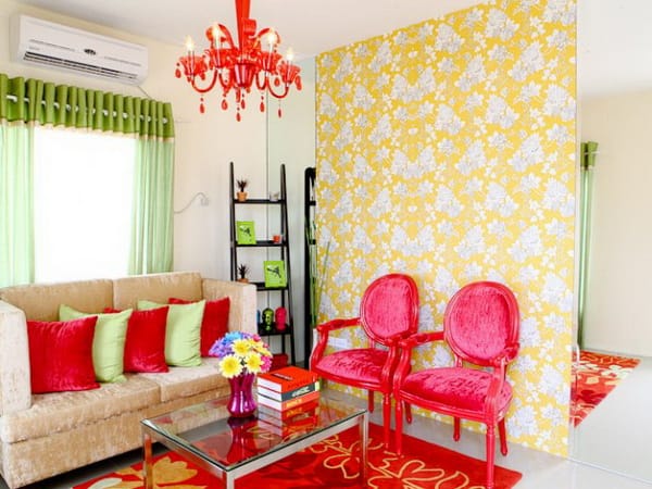 Interiors below are actual photos of the model bungalow house. Design to be colorful, the living area is a combination of red, yellow and green colors.