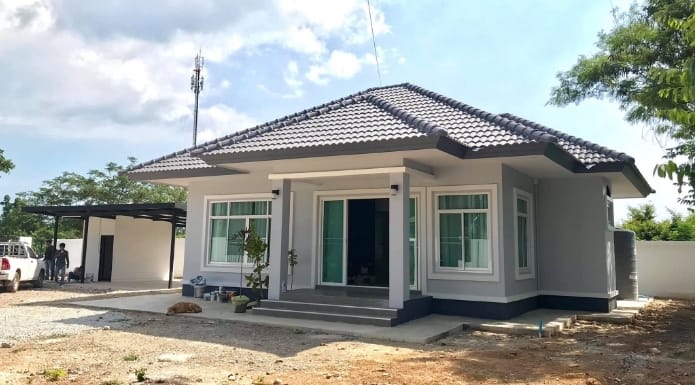 Today’s featured house is a three-bedroom conventional bungalow with a beautifully designed hip roof. Its gray, white, and black paint make its exterior exude relaxing and calm vibes. The glass door and glass windows added […]