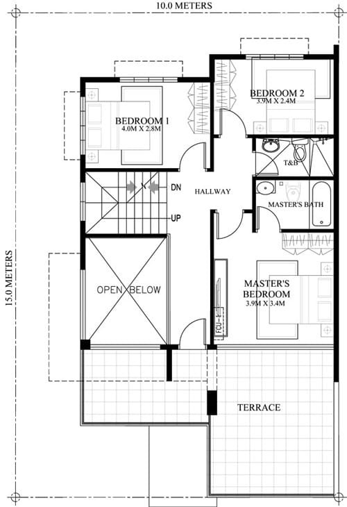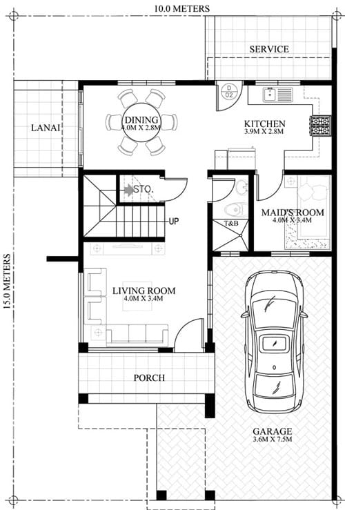 Celestino is a 4 bedroom house plan that can be built in 10 meters frontage width lot. Due to its design, the lot is maximize since it is a single attached two story design. At only 150 sq.m. lot area you can build this modern house with ease.