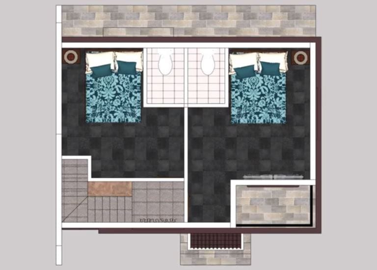 Compact two-bedroom modern double storey house