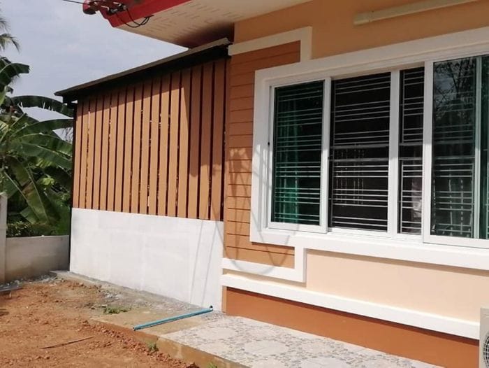 This bungalow features light paint colors like beige, brown and white. These colors complement each other. They exude an aura of cool, serene, and lively ambiance.