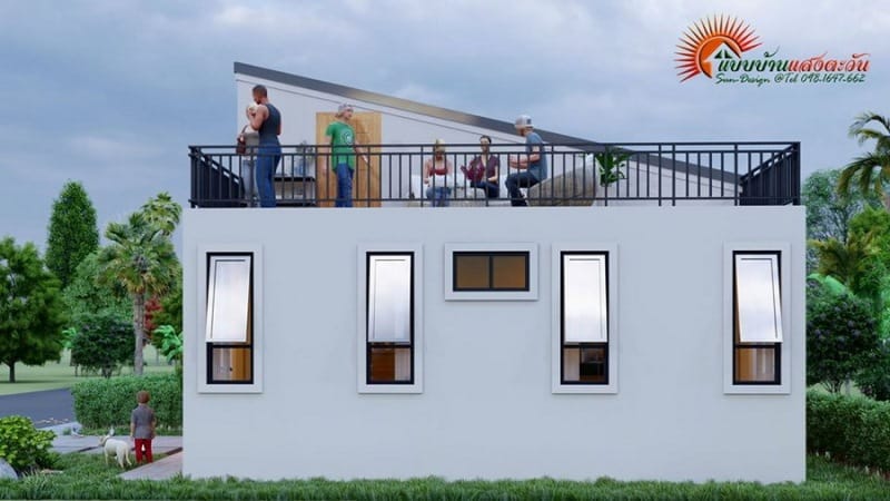 There are some families who buy smaller houses because of family size or financial capacity. The featured house is a modern two storey house in a compact design with an area of 68.0 sq. meters only. This house design is different from most houses with small areas and two storey houses. Instead of utilizing the second floor for integral spaces like bedrooms, the space is used as a balcony for family relaxation and other activities.