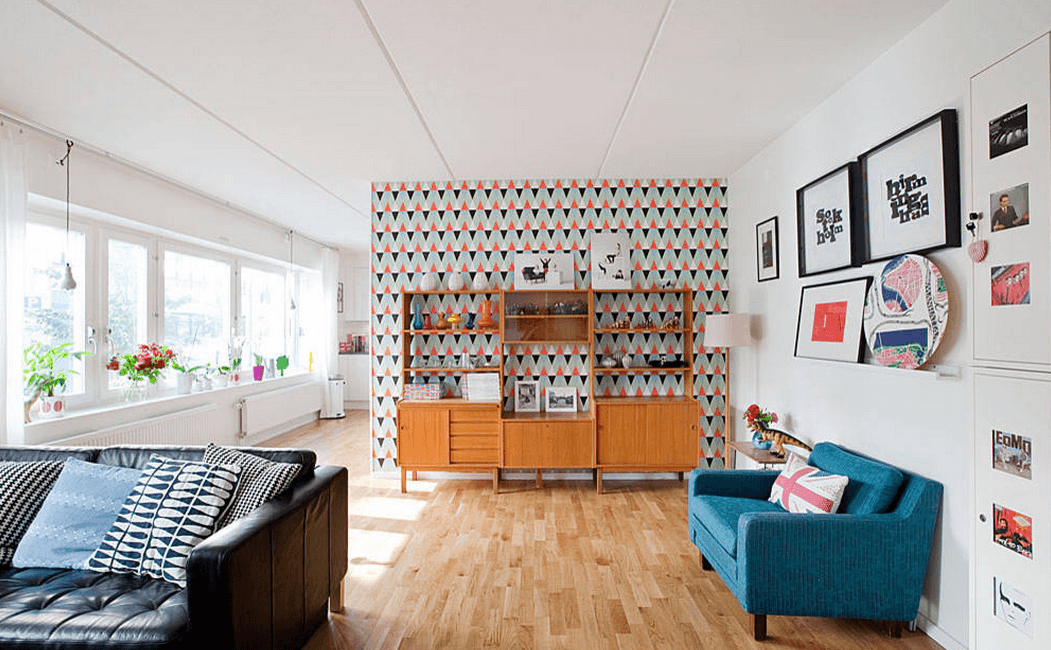 The place where the floor meets the walls defines the size of the room physically and visually. You cannot alter the location of the walls without constructing, but using a living room decoration that can emphasize the height of the wall can draw the eyes up and make the room appear bigger.