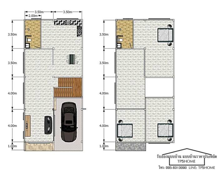 The house measures a depth of 16 meters and a width of 7 meters. It is indeed an elongated house. The firs floor has the carport, the living room, a spacious dining and a kitchen, and a common toilet and bathroom.