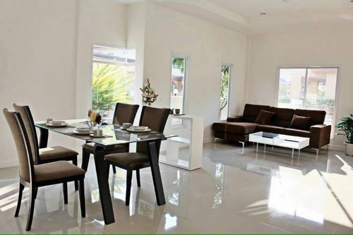 The windows of the house use clear glass with white borders to promote ventilation and decrease heat. These windows let the light spread to the house and distribute the air to the whole house. There are also lamps and lights installed throughout the house to light up every night.