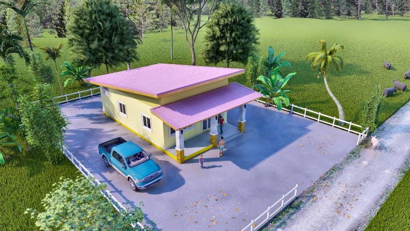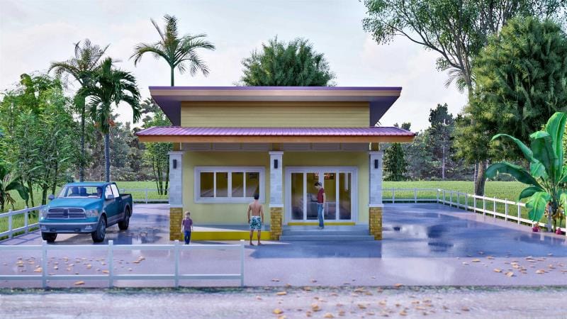 Meanwhile, the private zone of two bedrooms occupies the left side of the house. The open space can accommodate lots of cars because of its size. Additionally, the spacious area in front of the house can serve as an extension of the living room for relaxation and other family-related activities.