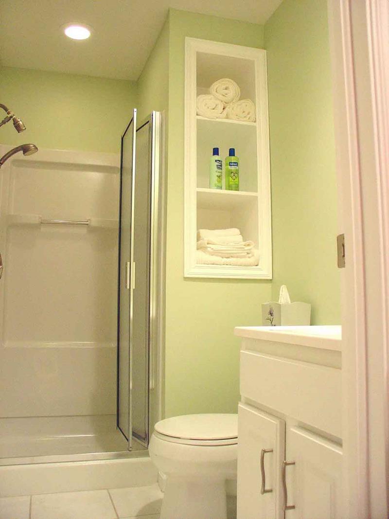 When designing a small bathroom, you need to use efficient solution for storage.