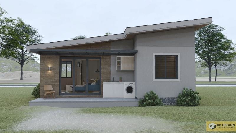 In addition, one of the highlights of this design is the single shed roof assembly with grey-colored sheets which complements the overall elegance of the house.