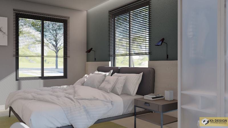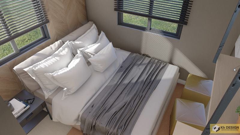 The bedroom with glass windows for ventilation of the room.