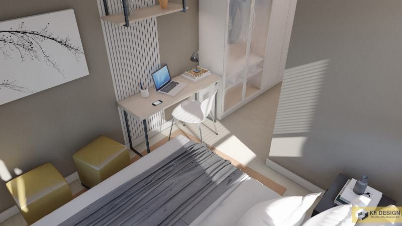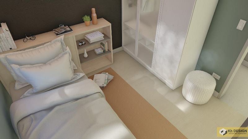 The third bedroom bursts in gracefulness with a fusion of white, cream, and brown colors covering the entire space.