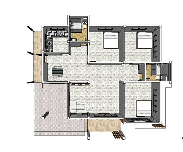 Built in a 95 square meters, this house has three bedrooms, two bathrooms, a living room / hall, a kitchen and a spacious dining area. It also has a balcony to receive guests who prefer to stay only for few minuets that they do not need to the living room. With a balcony, you can have a place to breathe in fresh air while you have coffee or smoothie.